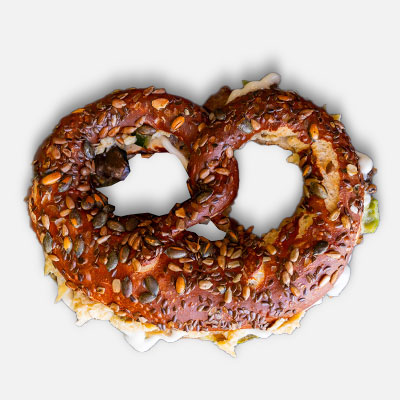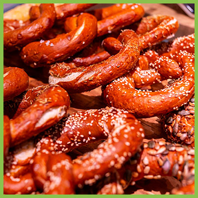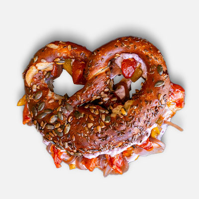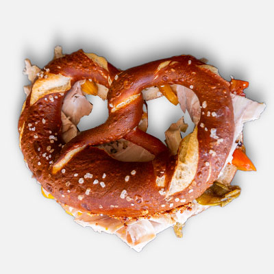 Il nostro Brezel non è un semplice contenitore per gli ingredienti: è esso stesso un protagonista del gusto. La sua crosta dorata e salata, ottenuta grazie a un processo di lavorazione tradizionale austriaco, aggiunge un sapore distintivo che eleva ogni ingrediente al suo interno, creando un’armonia di sapori impossibile da replicare con un normale panino.